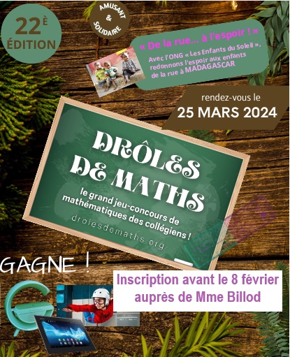 Le collège organise pour la 1ère fois le concours Drôles de maths pour la semaine des mathématiques dont le thème est: « l’important c’est de participer ! »