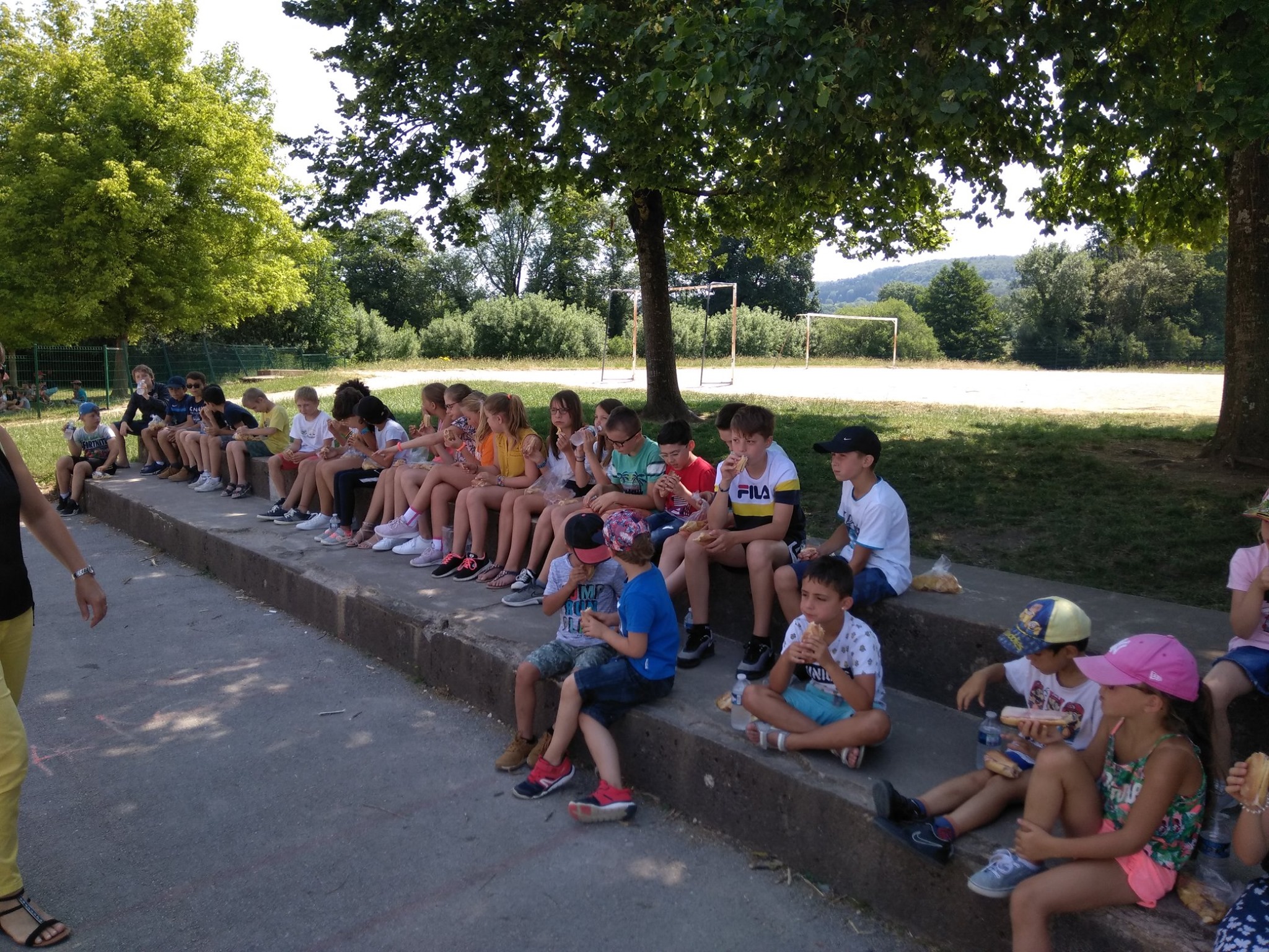 Canicule Posted By: Sylvie DEAU 18 juillet 2019 Quelques photos des élèves de primaire… pendant la période de la canicule! On se rafraichit à l’ombre pour notre dernier jour d’école, en pique niquant sous les arbres et en terminant avec une glace!