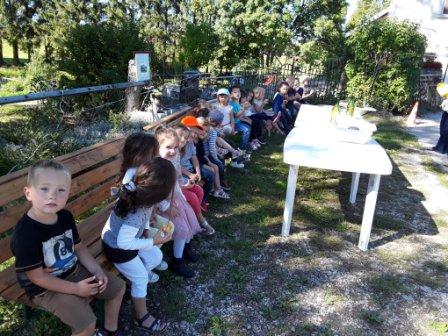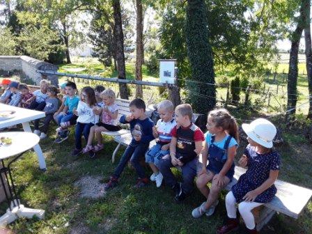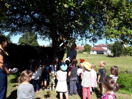 Tous les enfants de maternelle de notre école travaille sur le thème de « la pomme » pendant la 1ère période de cette année scolaire. A cette occasion, les enfants de la classe de Moyenne Section se sont rendus chez Mme MULLER pour découvrir un pommier et ses fruits. Pour joindre l’utile à l’agréable, Mme MULLER a offert du gâteau aux pommes et du jus de pommes. Petits et grands se sont régalés. Un grand merci à Mme MULLER pour son accueil!
