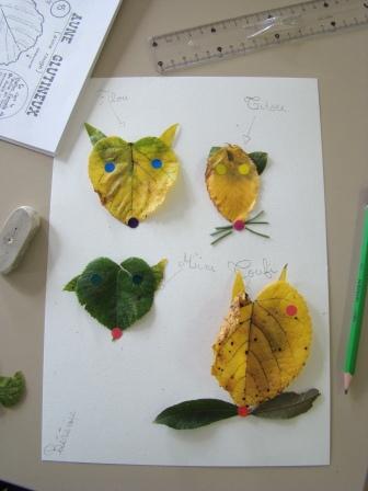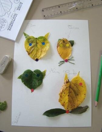 Création d’animaux avec les feuilles des arbres trouvés dans la cour de l’école