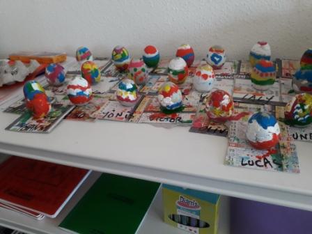 Voici les créations d’œufs en ciment réalisés par les CP/CE1 A.