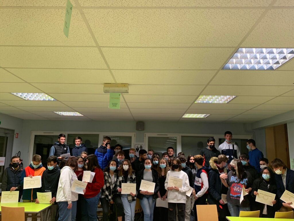 Remise du Diplôme National du Brevet pour nos anciens élèves de 3 ieme Vendredi 19 Novembre 2021Madame Chays, ancienne directrice de l’établissement avait fait le déplacement pour remettre les diplômes, avec Mme LE HIR, maire de Valdahon, Pascale DROZ, adjointe à la mairie de Vercel et Mme DEAU, la nouvelle directrice de l’établissement.Beaucoup d’émotions pour nos nouveaux diplômés!Félicitations à eux et bonne continuation à tous ![]()