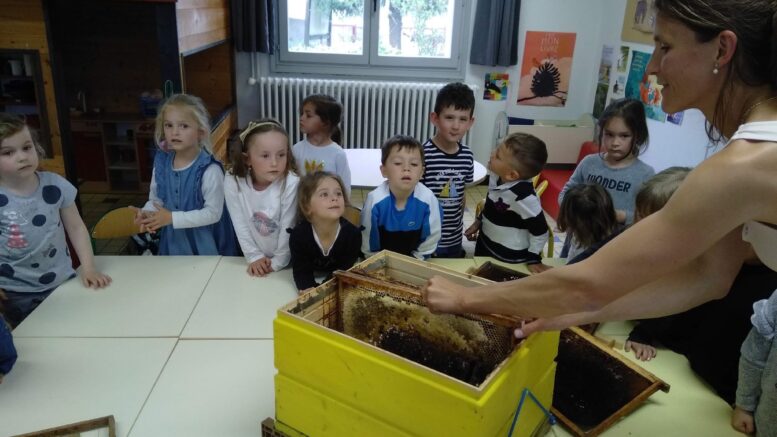 Visite de Mme Collette Audrey, une maman d’un de nos élèves, qui a expliqué le fonctionnement d’une ruche, avec ses abeilles et sa reine à nos élèves de Moyenne Section.La visite s’est terminée par la dégustation de miel ![]()