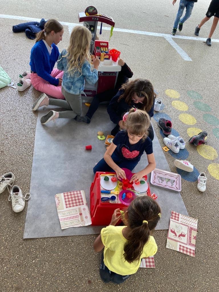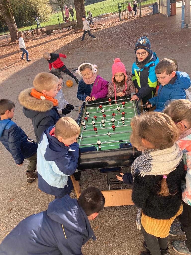 Après le repas au restaurant scolaire vient le temps des activités. Les enfants du primaire ont le choix entre plusieurs propositions. Ils peuvent faire des constructions, des jeux d’imitation, des puzzles, dessiner, lire … Et tout cela à l’intérieur ou à l’extérieur en fonction du temps. Depuis peu un baby foot est venu complété le choix des activités. De beaux moments de partage où chacun apprend à vivre avec les autres.