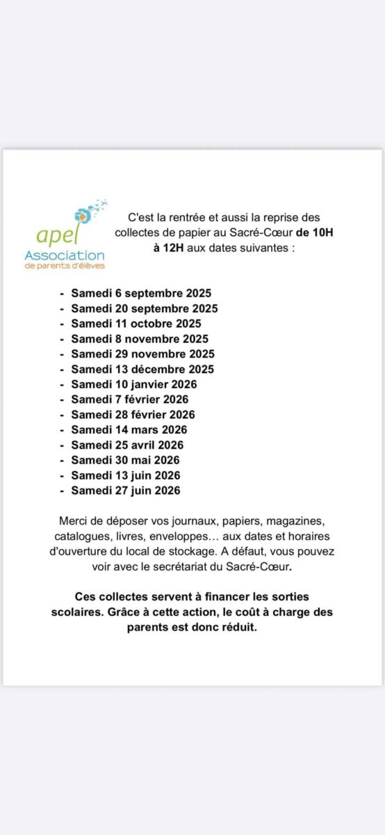 Dates pour la collecte de papier 2025-2026.