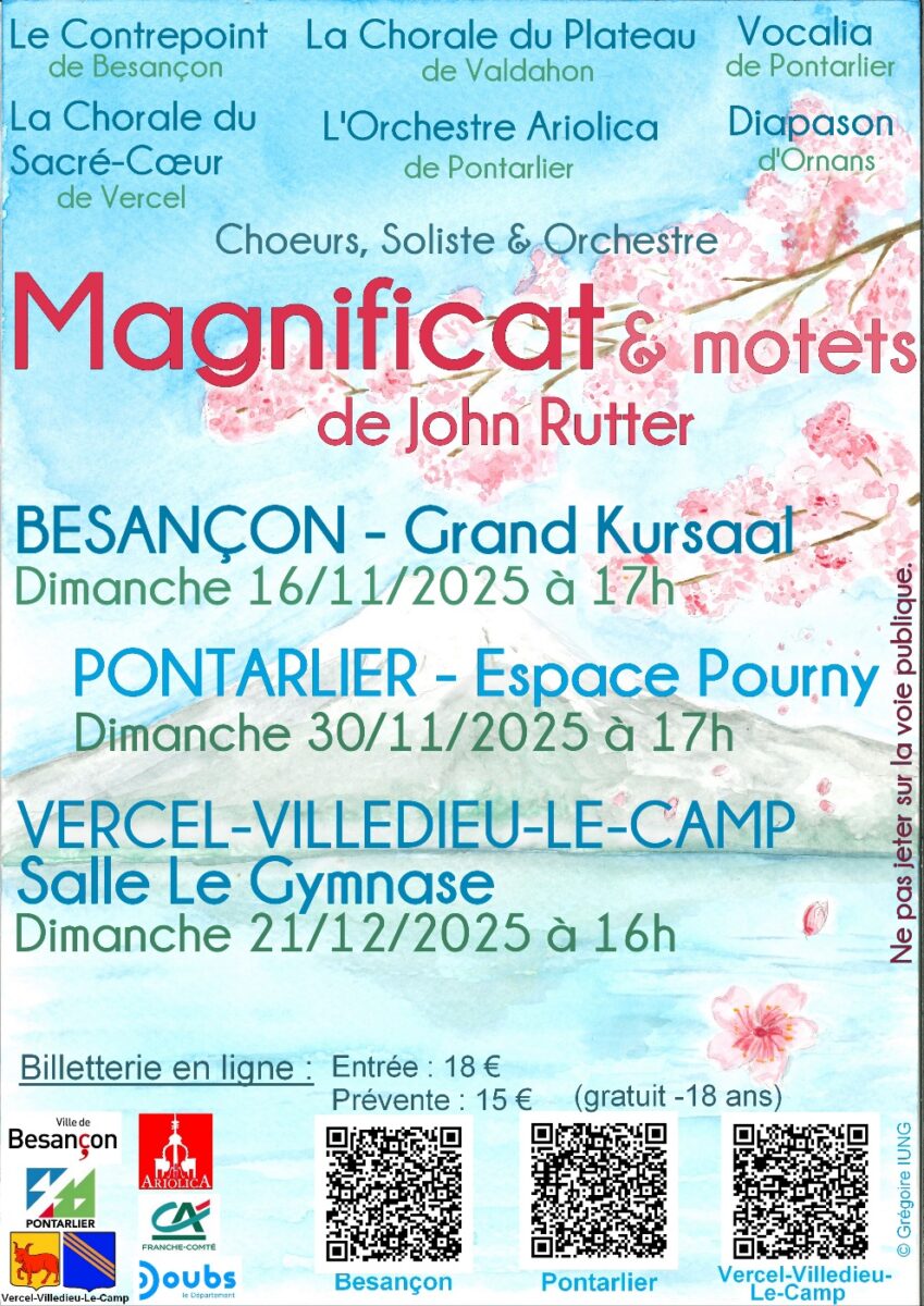 Depuis avril 2025, les élèves de la chorale se préparent pour 3 concerts fin 2025, qui se dérouleront entre le 15 novembre et le 21 décembre. Ces concerts seront l’occasion de partager la scène avec des musiciens le contrepoint et différentes chorales: Ariolica, Vocalia, le contrepoint, la chorale du plateau. Pour le Magnificat du compositeur John Rutter.