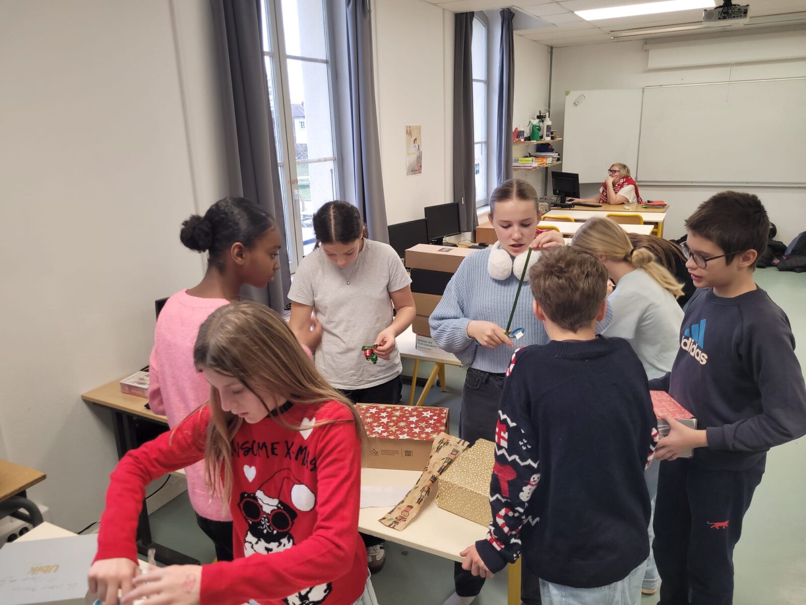 Après un tirage au sort pour le Secret Santa de Noël , les élèves de quatrième A ont ouvert chacun un cadeau