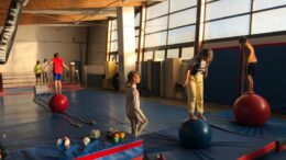 Les élèves du collège en atelier, le vendredi après midi : initiation à la jonglerie, à l’acrobatie….