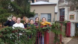 Un air de fête souffle au Sacré-Cœur. Les élèves de 5ème, se sont relayés aujourd’hui pour commencer la décoration en accrochant des branches d’épicéa et sapin sur les portails du groupe scolaire puis aux fenêtres…